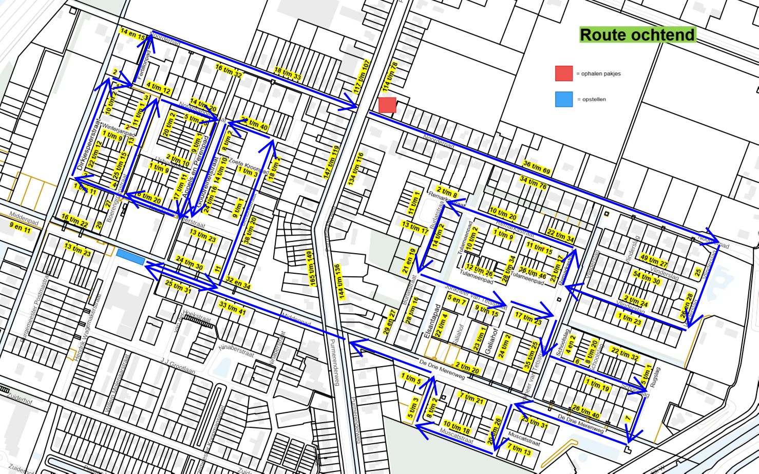 Straatnamen Ochtendroute: